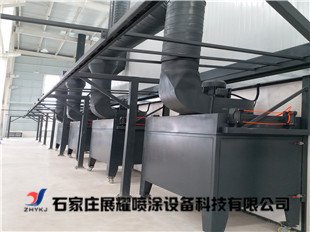 电泳涂装用的搬送设备是由运送链、承载车体的挂架和滑橇等构成,应能操控车体在槽内的姿态,要求链速必定且安稳、无脉动,在车体上无槽液流痕,确保有满足的强度,且质量轻。 快速换色静电喷塑设备rxjdsb。cn 性能稳定的喷粉设备生产商hbzytz