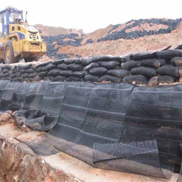 聚乙烯(hdpe)为原材料,经塑化挤压成板材,对板材进行规则冲孔,加热后纵向拉伸而成的土工格栅。这种过程中使高分子成定向线性状态并形成分布均匀、节点强度高的长椭圆形网状整体性结构。此种结构具有相当高的拉伸强度和拉伸模量,特别是我公司此类产品更具有超国际水平的高早期(伸长率在2%—5%)拉伸强度和拉伸模量。给土壤提供了理想的力的承担和扩散的连锁系统。该产品拉伸强度大(>150Mpa),适应各种土壤,是被广为采用的加筋加固材料。一般用于铺设在土壤中,通过格栅网孔与土体之间的咬合和互锁作用,构成了一个高效的应力传递机构,使局部载荷能迅速有效地扩散到大面积的土体中去,从而实现降低局部破坏应力,提高工程使用寿命之目的。