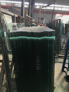 浮法玻璃中间夹以强韧PVB(乙烯聚合物丁酸盐)胶膜,经