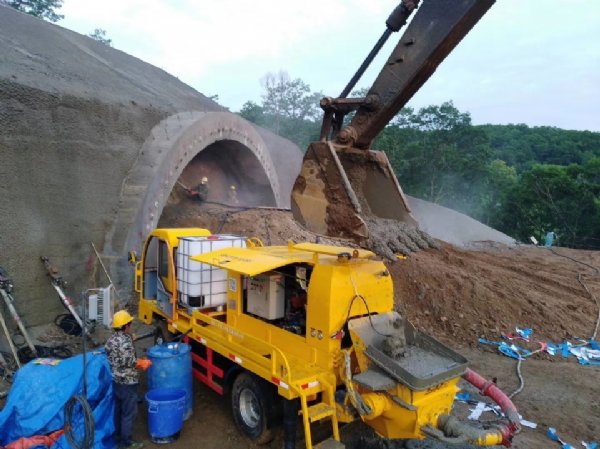 钢筋网,沿环向压紧后再喷混凝土。钢筋网随受喷面起伏铺设,与受喷面的间隙一般不大于3cm。与锚杆或其它固定装置连接牢固。隧道车载式半自动喷浆车开始喷射时,缩短喷头至受喷面的距离,并调整喷射角度,钢筋保护层厚度不小于5cm。喷射中如有脱落的石块或混凝土块被钢筋网卡住时,及时清除。
