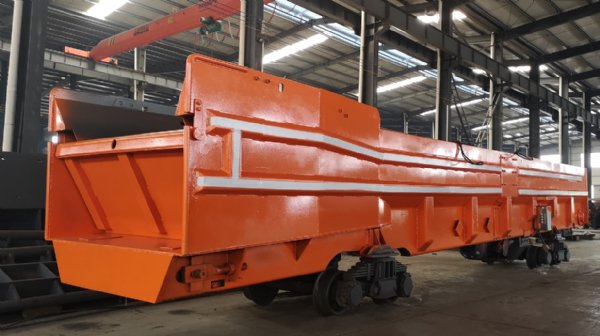 隧洞矿井临时储存转载仓是解决和针对如T型(丁字型)单巷运输;联络巷中的斜井与平巷掘进或综掘运矿时起缓冲作用;独头掘进或运距达2500米的掘进和运输巷道,安设大型自储自卸式储碴仓做二次转运场,首先把作业面空出来,好使下一个工序进场作业;在作业面达1500米的运距,运输量小、运输时间长,往往出现掘进或综采运输压力大重、不连续,不能与快速装载能力的扒渣机相符合,制约出渣或运矿;出渣或运矿不及时又反过来制约着掘进速度或综采效率;针对多个工作面共用一条或少条巷道出渣运矿,为了解决运输工具在掘进或综采工作面转载循环时间周期长而供应不足、脱节,制约掘进综采速度,在料仓下或巷道中增设加宽带安设大型自储自卸式储矸仓充当储仓(料仓),这样矿或渣就可以经大型自储自卸式储矸仓连续性垂直卸入运输工具,从而提高运输速度和掘进综采速度和效率,使工作面空出来,让凿岩综采与出渣运矿平行作业。