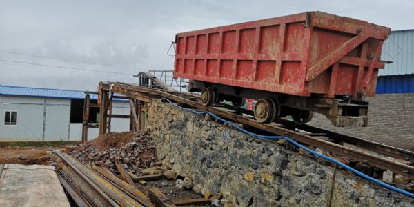 钢板焊接成,其强度足够能较大的冲击力而不变形;翻碴台铺设两道轨道,两根Ⅰ16工字钢重叠焊接成护轨共计四根护轨,翻碴副轨固定在两道之间组成整个翻碴台;整个翻碴台的投入使用根本解决了洞内弃碴需机械二次倒运到矿车上机械浪费的现象。提高了生产效率和达到了控制成本的目的。