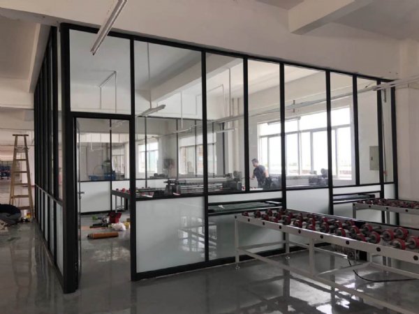 4) 隔断墙内的玻璃压盖板均使用铝合金材料制成,大大增强了钢化玻璃的稳定性和平整度。