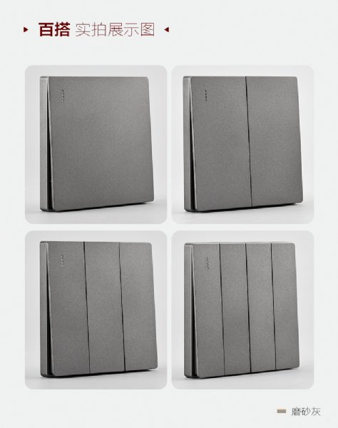 开关面板结合现代潮流的时尚风格,有多种颜色可供参考,线条优雅、简洁大方,晶莹剔透。适应各种各样的房间风格而选用。