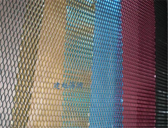 铝板网颜色种类多样,有哑金、亮金、亮银、红色、蓝色等,室内使用,五年不褪色。