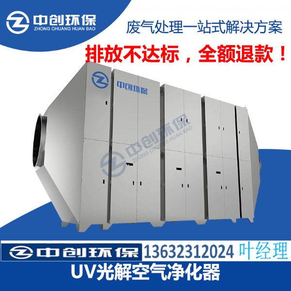 1、本产品利用特制的高能光束照射恶臭气体,裂解恶臭气体如:氨、硫化氢、甲硫氢、甲硫醇、甲硫醚、二甲二硫、二硫化碳和苯乙烯,硫化物H2S、VOC类,的分子链结构,使有机或无机高分子恶臭化合物分子链,在高能紫外线光束照射下,降解转变成低分子化合物,如CO2、H2O等。