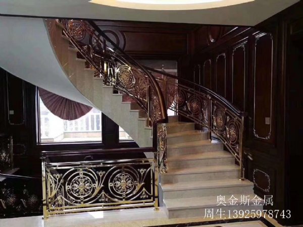 宜宾奥金斯全新别墅室内装饰铝板雕刻镂空花格玫瑰金楼梯护栏,奥金斯铝艺雕刻楼梯扶手有专业电镀、抛光、钻空、封火等处理,欢迎广大客户来图或来样生产!自创建以来,以“精诚所至,金石为开为企”为精神,以“质量为先,诚信为本”为经营宗旨,以“客户满意,合作愉快”为工作标准。宜宾奥金斯厂家面对不断进步的行业市场,为保持可持续发展的潜力,公司不断引进各类优秀的专业技术人才,优化完善管理和经营机制,提升现代企业形象意识,全方位做到尽善尽美,贯彻“诚信”、“务实”、“互利”、“共赢”的企业理念,严谨科学的质量方针,缔造出更辉煌的明天!