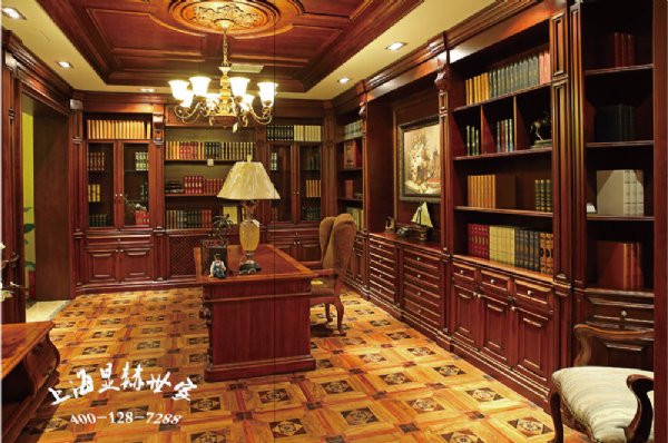 上海整木定制~原木实木书柜