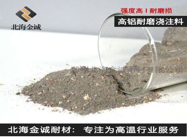 ,高铝浇注料成型初凝后,标准养护至28d,耐压强度可达40~60MPa。其特点是水化速度慢,后期强度大和耐火度高。高铝耐磨浇注料具备抗渗透、耐侵蚀、抗冲击、耐磨损,力学性能好等特点,广泛应用于电站