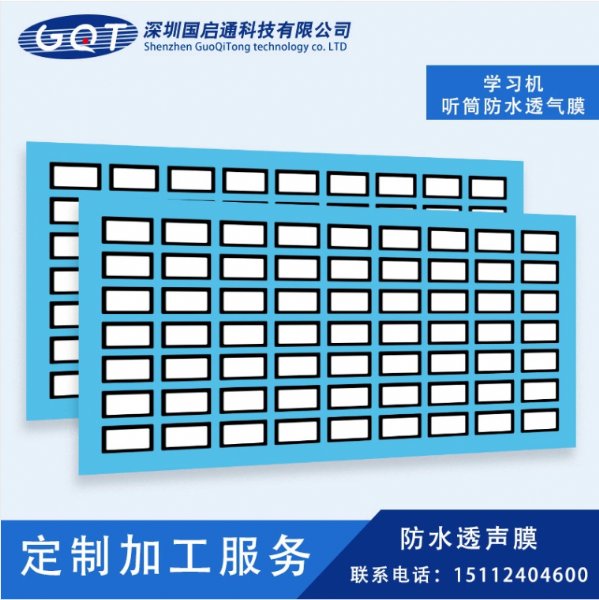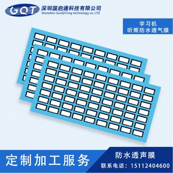 防水透声膜是一种经过特殊工艺加工形成的多微孔膜,多被贴附在防水电子设备声学模块出音口上,能做设备接触溅液、或灰尘以及暂时侵入水时为设备提供压力排放和平衡功能,起到防水透声作用。声音透过膜层都会造成声音的衰减,防水透声膜一般要求声音损耗小于等于2db,所以透声膜的技术要求很高,市面上的防水透声膜种类很多,选择材质这方面是很重要的, GQT防水透声膜材质是IP67以上防水防尘透气能够保持产品声音品质不变,同时能达到美观的外罩。