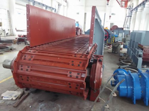 钢板基础上。板式给料机较短时(小于10米)整体制作和发货,如果长度操过10米,通常采用分段制作,用户现场组装。