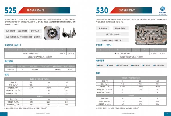 525适用于各种热作(热挤压、压铸、复杂型腔热锻)模具i,主要针对高韧性和高硬度兼具的热作模及工程用钢,也可以作为冷作模具材料(如重型冲裁、冷锻等),还可用于高镜面、高耐磨高韧性的复杂型腔