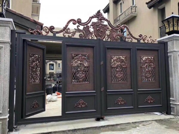 别墅庭院铝艺大门在选择的时候,我们要注意这样一个问题,就是一定要注意选择到合适的款式。别墅庭院铝艺大门选择时,应注意安装的环境,可以说,当我们选择铝艺大门时,一定要看一下所要安装的环境是怎么样的,是在企业还是个人。安装环境的不同,其所选择的大门的款式也是不一样的。看一下是滑道式还是平推式哪个好。