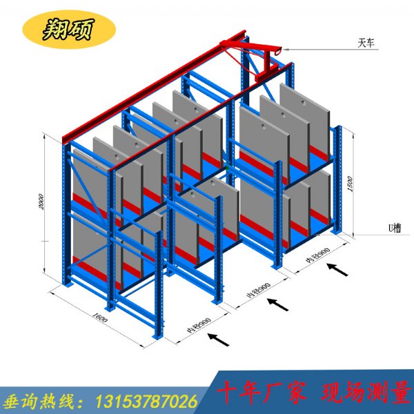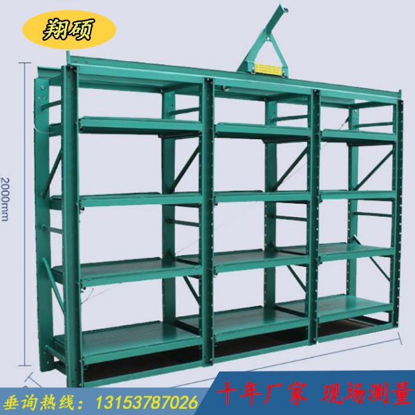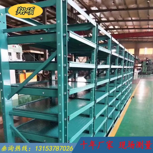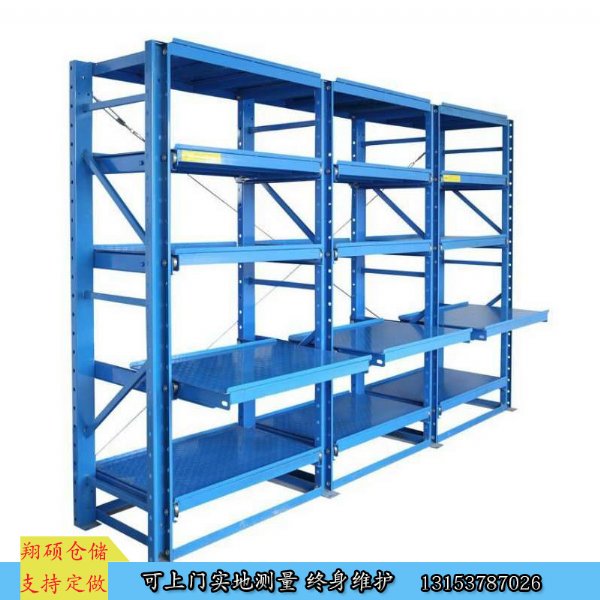 模具架。主要存放各种模具物品,根据层载能力要求分为轻型模具货架和重型模具货架。货架顶部可配置移动葫芦车,以方便模具的起吊。模具货架按照抽屉是否可全部抽出可分为全开模具货架和半开模具货架。