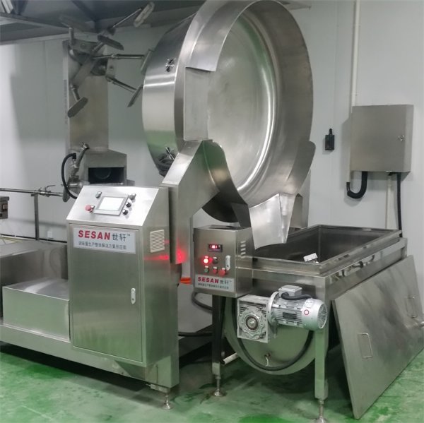 大型全自动炒酱锅是行星搅拌炒锅的延伸,它带有六只搅拌头,无需人工炒制、锅体可倾,液压控制,自动卸料、非常方便。采用背面集中排废气,作业舒适安全,搅拌头在锅内自转和公转,能增强独特炒制时间,燃气供热/电磁加热供热,适用于炒制(或烘焙)蔬菜、鱼肉、调味品、药材等,常用于餐饮、烘焙、食品加工等行业。