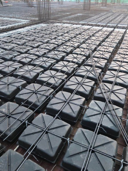 钢筋混凝土内部形成一定间隔双向网格现浇肋的钢筋混凝土空心楼盖,薄壁方箱是一种全内置芯模,能有效约束现浇混凝土的变形和挠度,具有重量轻,强度高的优点。薄壁方箱是一种正方形或长方形薄壁空心小尺寸全封闭无通孔的箱体,*大面积尺寸小于650mm*650mm,方便现浇砼均匀流入方箱底部,形成空心楼盖,是内置芯模品种之一。