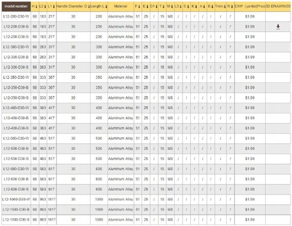 TANJA L12 铝合金机床设备把手 聚酰氨基亚光饰面机械设备拉手