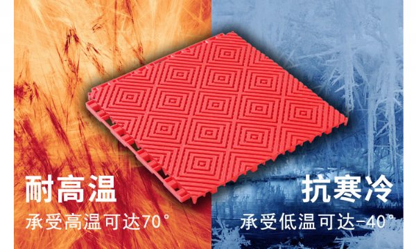 水槽中。在小雨的天气,也无须中断运动。即使大雨的天气,离地面13Mm的地板高度也能保证雨水会很快被排空。这种设计就象体现了人类同自然界**停止的争斗精神一样,可以使我们的运动再也不受任何天气气候影响,在肆虐的天气中一样可以享受运动的乐趣。这对许多约定时间的运动赛事与学校的教学活动有着特别实际的特别意义。