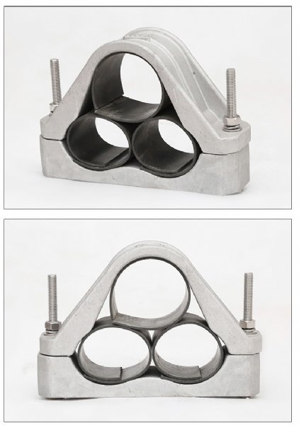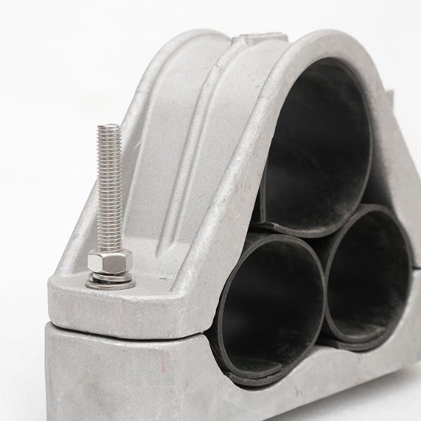 交流单芯电力电缆的刚性固定,宜采用铝合金等不构成磁性闭合回路的夹具;其它固定方式,可采用尼龙扎带或绳索。不得用铁丝直接捆扎电缆。交流单芯电力而使用*新型电缆 固定夹,