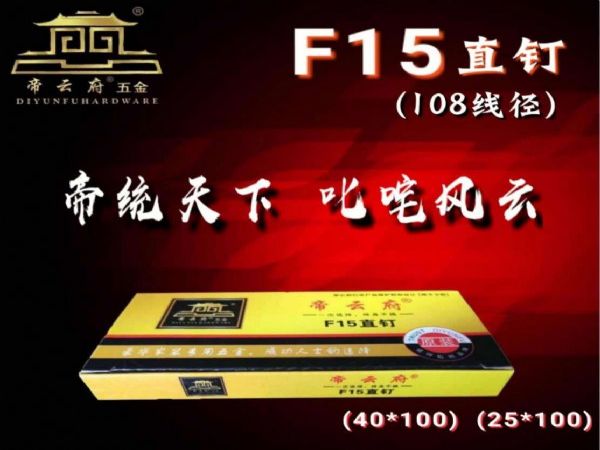 帝云府五金国标直钉F15采用108线径,有2500发.4000发不同数量包装,每件20盒,4000发每盒重423g,2500发每盒274g,帝云府五金品质;一次选择,终身不换!
