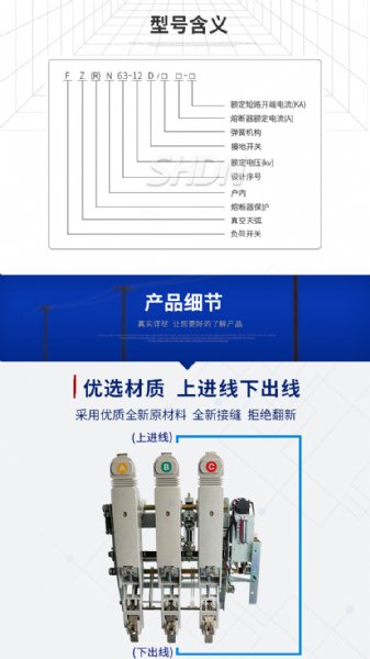 负荷开关(以下简称负荷开关)适用于三相交流50Hz、12kV的供电网络中,作为开断负荷电流及关合短路电流之用。该产品可配有手动和电动机操作机构,特别适用于严酷条件下,不检修周期长及频繁操作要求的场所。带