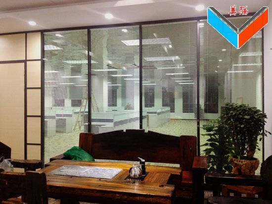 3.办公室双层铝合金玻璃隔断特点三:玻璃分为两块,单量整体较轻,质量较小,安装简易,整体看起来更加协调。