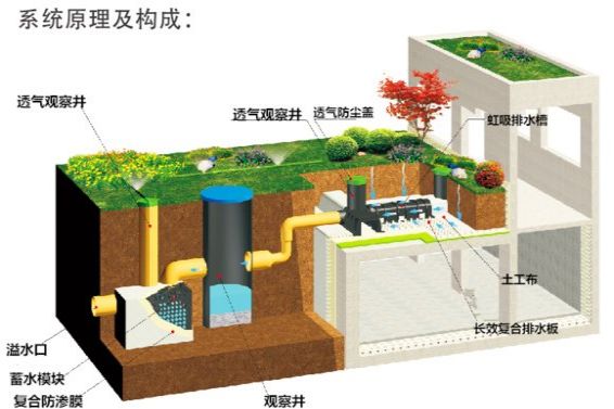 车库顶板虹吸排水系统施工简单,因为虹吸原理可快速排水,减少车库顶板压力,避免渗漏和植物根系长期泡水腐烂,利于植物生长。