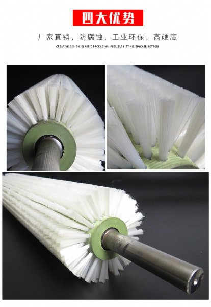 不锈钢丝、铜丝、尼龙毛、猪鬃、马鬃、羊毛、磨料丝、剑麻等;大型刷辊特点:具有强度高、使用寿命长、清洗率高等特点,具有较强的耐酸碱、耐极性溶液、耐腐蚀性、装机方便等优点。