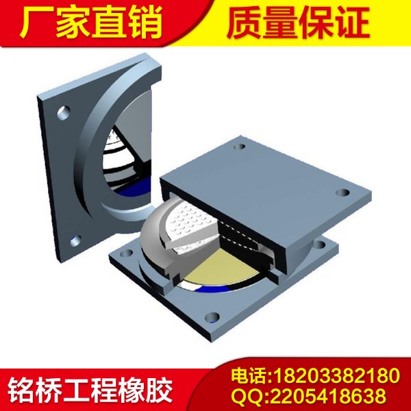 定向活动球铰钢支座当结构发生转角时,球芯产生转动,释放上部结构产生的转矩。地震时,刚性抗震措施和柔性减振措施同时发生作用,以抵御巨大的地震输入能量。在大的地震波动情况下,既能保证桥梁上、下结构间合理相对位移,减小地震力的放大系数,又使结构保持统一性。该支座可抵御8-11度地震,对高烈度地震区尤其直下型地震区的工程结构有良好的抗震减振作用。