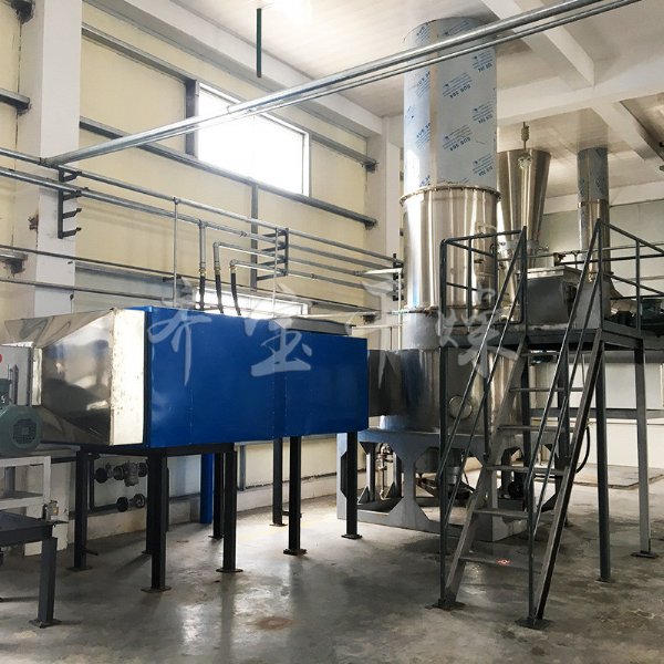 在干燥机底部高温区,热敏性物料不与热表面直接接触,并装有特殊装置,解决了热敏性物料的焦化变色问题。由于干燥室内周气速高,物料停留时间短,达到快速、小设备大生产。干燥室上部加装陶析环及旋流片,可以控制出口物料的粒度及湿度,以达到不同物料的终水分粒度的要求。