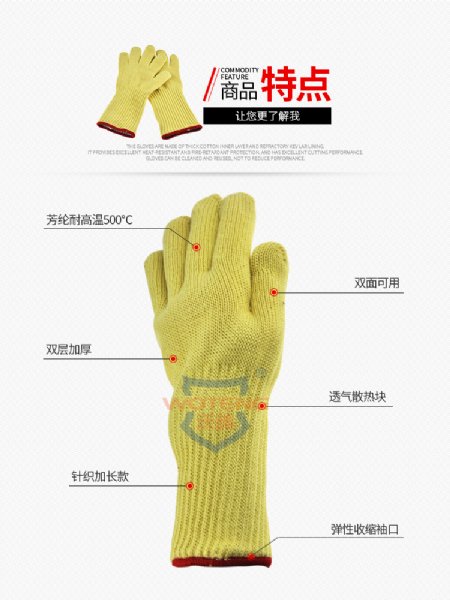耐高温,烧烤环境等。抗切割、耐磨及抗热,持久耐用。