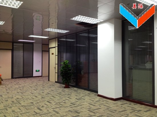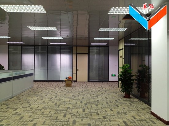 钢化玻璃可搭配10-12厘,双层磨砂玻璃搭配有5+5.6+6.8+8.10+10厘,美隔工厂做法:整片式到顶,分格式,不到顶,隔墙的框架是美隔工厂开开模生产铝合金组合的型材,