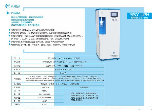 纯水机水思源纯水机产品特点:背光LCD