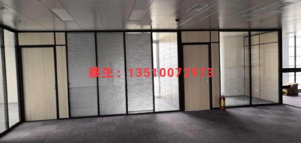 玻璃隔断墙内腔填充:通常加装手动、电控的铝制