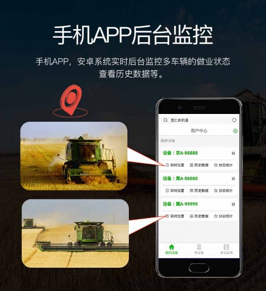 我国是世界上的农业大国,在社会发展的过程中普遍存在人们对农产品需求和可耕种土地面积之间的矛盾冲突问题,因而,党和*将农业生产作为国家安全发展的重要任务,并为农业生产发展提供了重要支持。在新的历史时期,想要更好地推动农业生产发展,需要相关人员在农业机械设备应用的过程中积极引进信息技术,将信息技术应用到农业机械内部电子装备、农机监测和机群管理调度中,从而有效提升农业生产效率。现我公司结合自身的优势和市场需求面向各级农机管理部门、农场、合作社、农机手推出一款农机*产品——云镜。