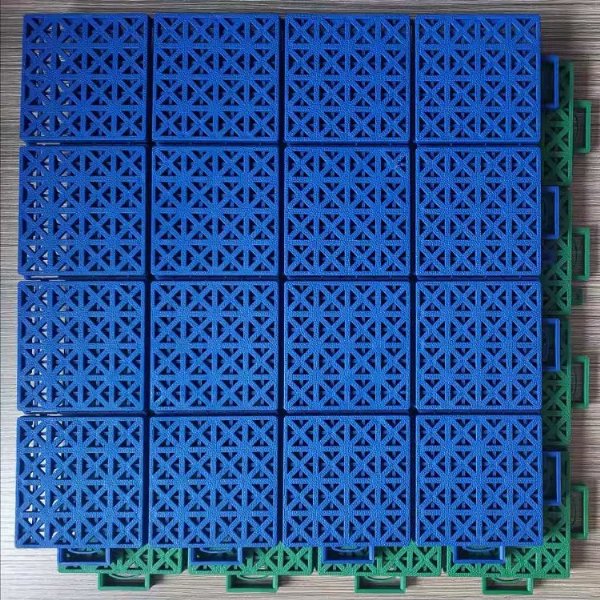 6耐用性:该产品所用原料聚丙稀(PP为高强度材料加入具有抗紫外线辐射抗氧化、抗寒等原料的改性聚丙稀,使该产品具有耐压、耐冲击、耐高低温、使用寿命长等优点。耐候性极高,不怕日晒高温、雨淋潮湿、冰雪严寒、**翘曲剥落变形。没有气候地域限制,雨后场地不积水。