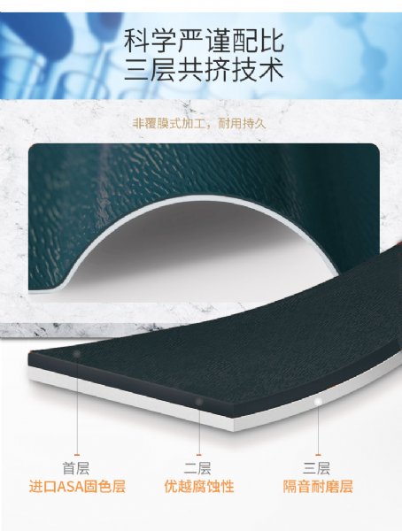 现在有些厂家更是用ABS作为面层,因为ABS原材料一万多甚至几千元/吨,非常便宜。但是根据理论,ASA的抗老化耐候性能是ABS的十倍,也就是说ABS的寿命相对于ASA要差近10年。且易褪色(几个月就褪色)易脆裂(脆化温度-7℃)。