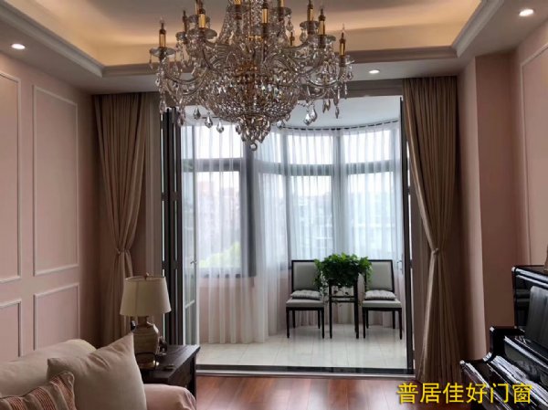 宽阔的门扇开启幅度大,让居室采光更充足,还空间更多自由;而无地轨道的独特设计,让出入通行毫无障碍;上部的