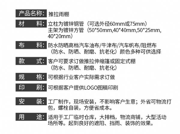 推拉蓬的安装也是决定推拉蓬使用周期的重要因素,如何安装好,固定好,对推拉篷以后的使用,维护都有很高的要求