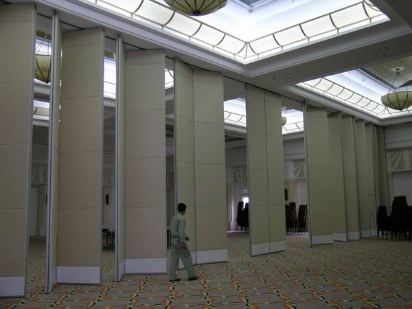 集防火、防潮(防水)、隔音(或吸音)功能,产品用于酒店、宾馆宴会厅或多功能厅,也可用于包厢,会议室、展览馆、医院、学校等场所。产品隔音良好,推动轻便,低噪音。隔断厚度为65mm-80mm100mm,适用高度12000mm以下,防火*高可达1.2h,隔音可达52db。