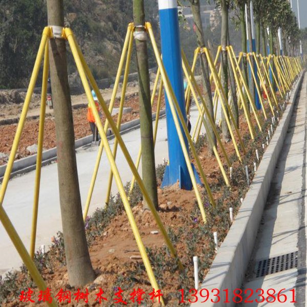 支撑架强度高,重量轻。 2.颜色可调节,美化街道环境 3,无回收价值,不会被人偷盗做其他用途 4.复合材料树木支撑杆耐腐蚀,不吸水,不怕雨水的侵蚀。 5.循环使用,节约成本。