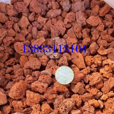 滤料,其主要成份为硅、铝、钙、钠、镁、钛、锰、铁、镍、钴和钼等几十种矿物质和微量元素,表观为不规则颗粒,颜色为红黑褐色,多孔质轻,颗粒粒径可根据不同要求生产。