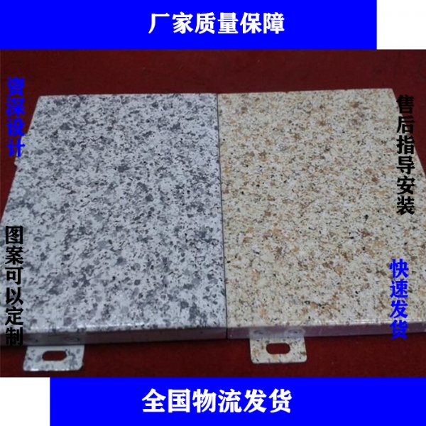 氟碳喷涂,仿真手感及石纹喷涂纹理逼真、质感超然,环粹显而易见;图案贴近自然,美观大方,打破传统纯色风格的装饰。清新时尚,高雅秀气,打造出独特的
