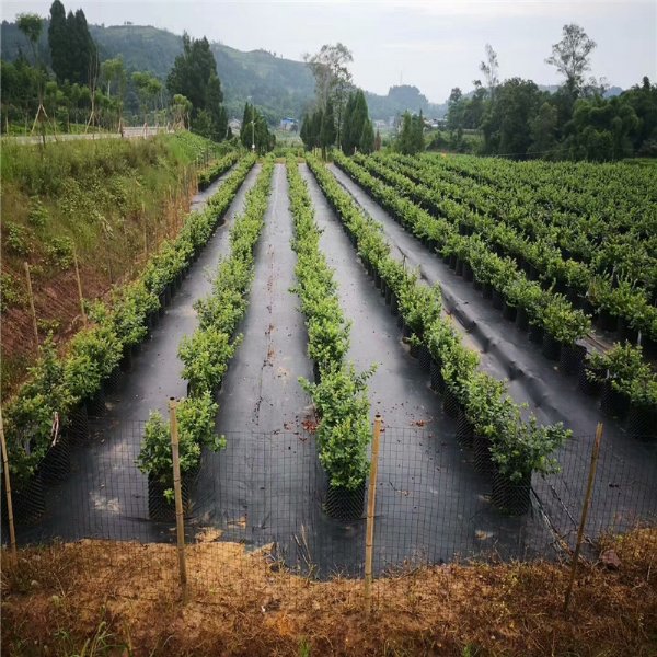 果园行间覆盖的黑色编织盖草布可使寒风难以侵入,减少水分的蒸发和流失,达到防冻的效果。在果树四周覆盖一层盖草布可以减轻冻土层的厚度,提高地温,减轻和预防根系的冻害。