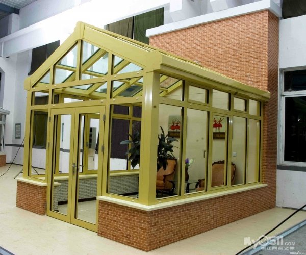 断桥铝合金结构。阳光房结构基本的四周立柱是必须的,加上顶面承托彩