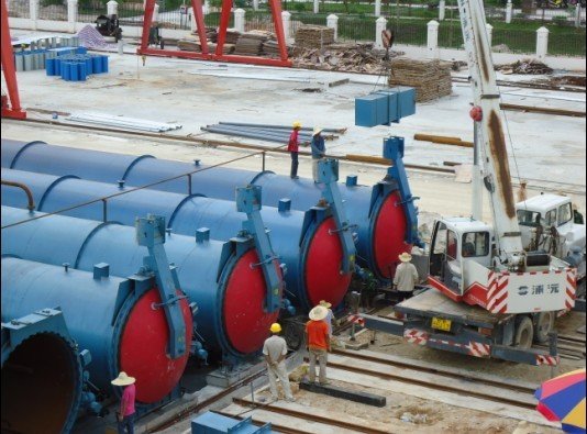 蒸压釜,砖坯获得强度和性能。出釜后的产品,通过我公司掰板打包系统,不但提高产品合格率还解决了砌块、板材同时分离的难题。