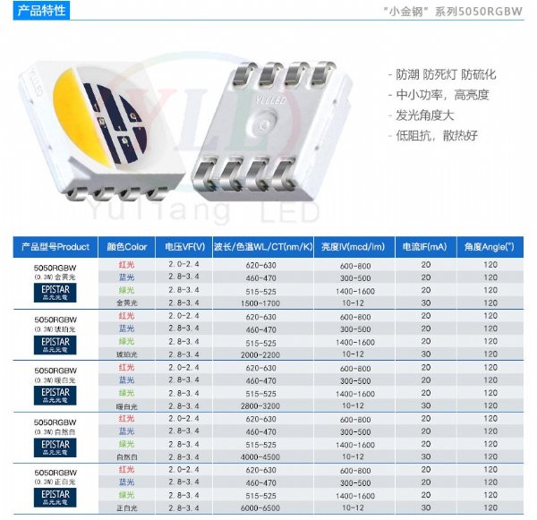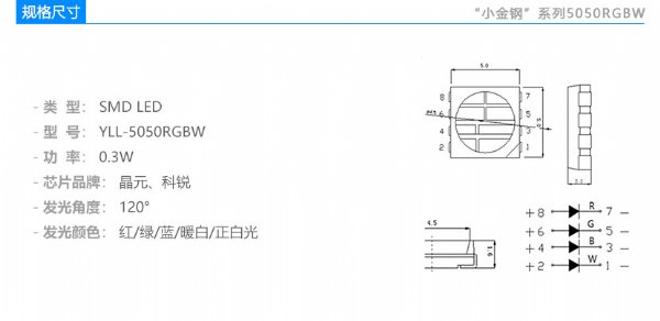 小金钢系列5050rgbw LED灯珠,全彩、中功率、高亮度