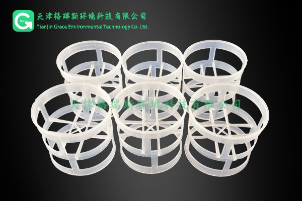 鲍尔环的结构非常的特别,如果按照它的形状结构的内筋划分可以分为:内筋为井字形的,一般称为塑料鲍尔环(井),内筋为米子型的,称为塑料鲍尔环(米)。鲍尔环的结构设计使得内外的液体或者是气体得以更好的流通,更加均匀的分布在周围,现在鲍尔环的各个方面都在有所改进。所以咋同样的降压条件下,它的液相分布的非常的均匀,处理量比拉西环提高了50%。