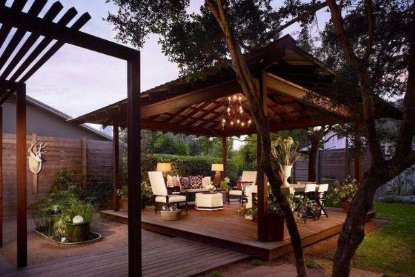 花架等,供人们歇息和欣赏自然美景,是户外地板、园林景观、木