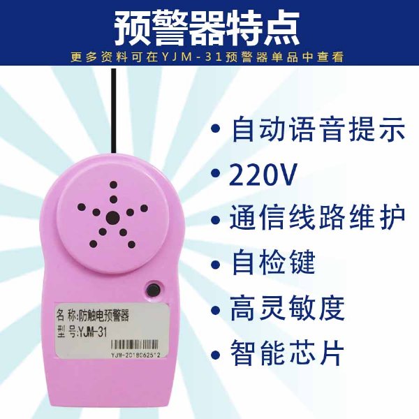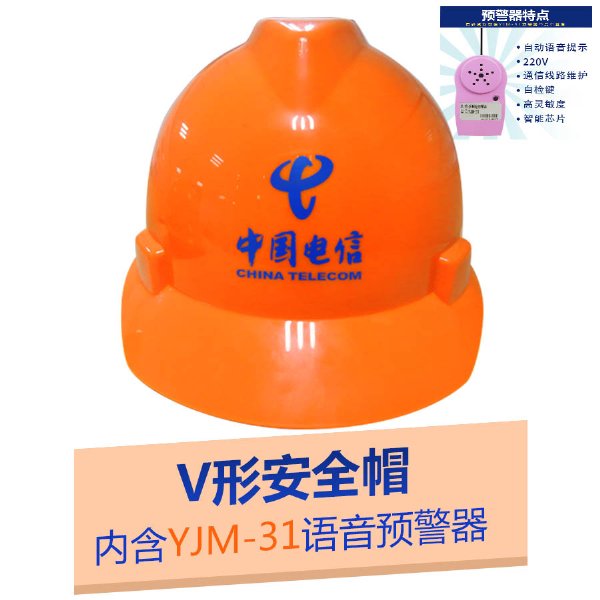 YJM-4 系列防触电语音预警安全帽符合安全帽国家标准、YJM-31预警器通过电力工业电力安全工器具质量监督检验测试中心检测,该产品适用于电信、联通、移动作业人员,在进行安装及维修线路时当检测到50Hz工频电场时会提示有电危险,起到防触电预警的作用,是弱电施工作业人员的一种极为有效的辅助安全用品。